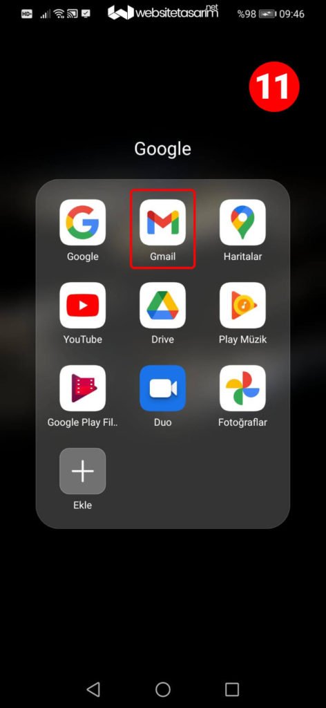 ● 11. resimde kırmızı kutu içerisindeki “Gmail” simgesine tıklıyoruz.
