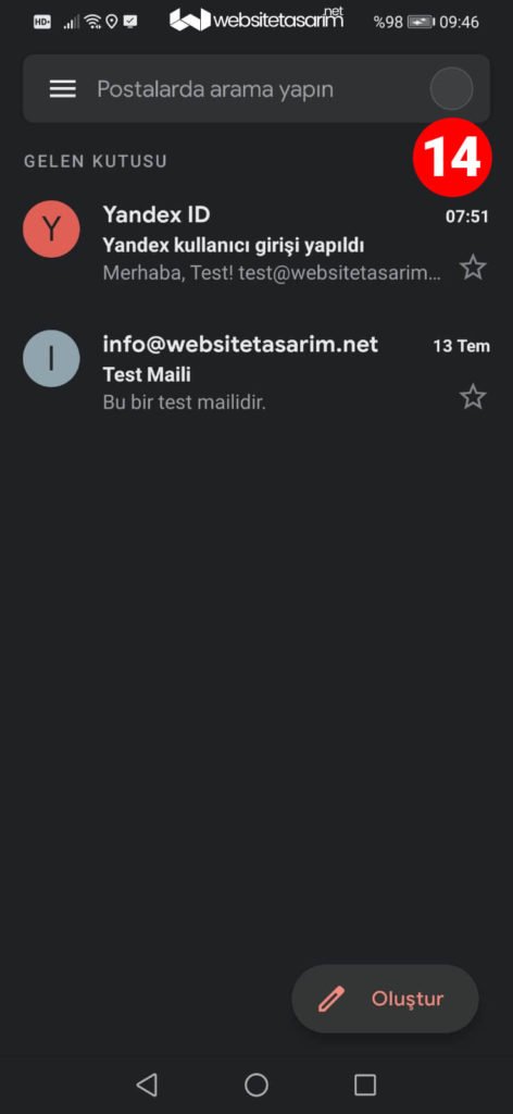 ● 14. resimde maillerimizin geldiğini görüyoruz. İşlem başarıyla tamamlanmıştır.