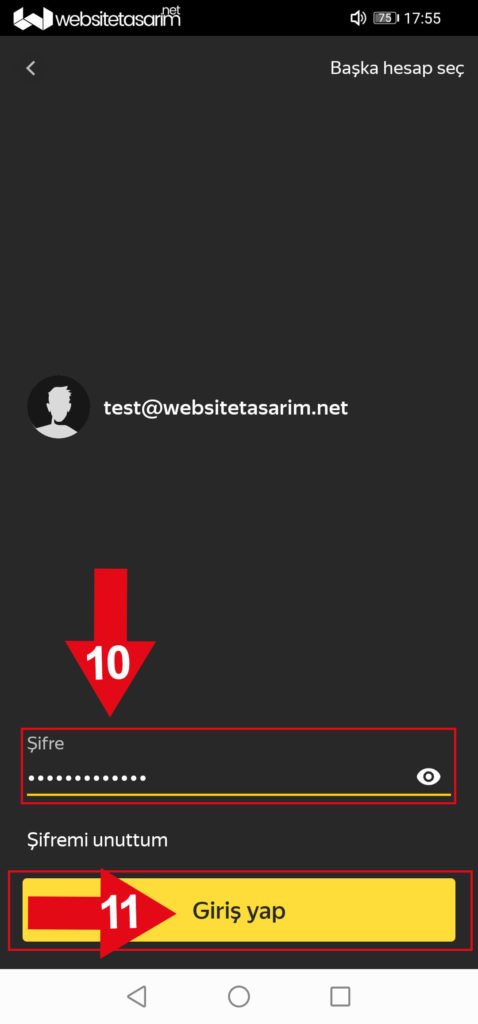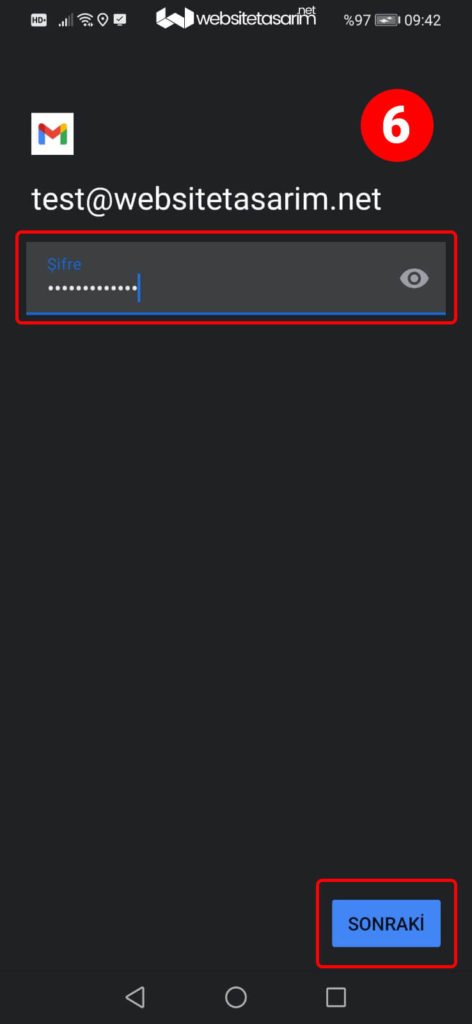 ● 6. resimde kırmızı kutu içerisindeki alana “e-mail şifremizi” yazıyoruz ve sonraki butonuna tıklıyoruz.