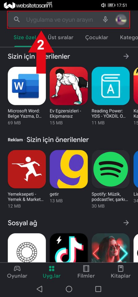 ● Ok içerisinde “1” ile göstermiş olduğumuz “Play Store” uygulamasını açıyoruz.