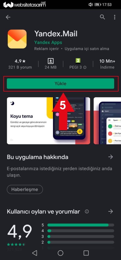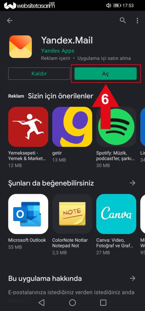● Ok içerisinde “4” ile göstermiş olduğumuz alanda çıkmış olan “Yandex Mail” uygulamasına tıklıyoruz.