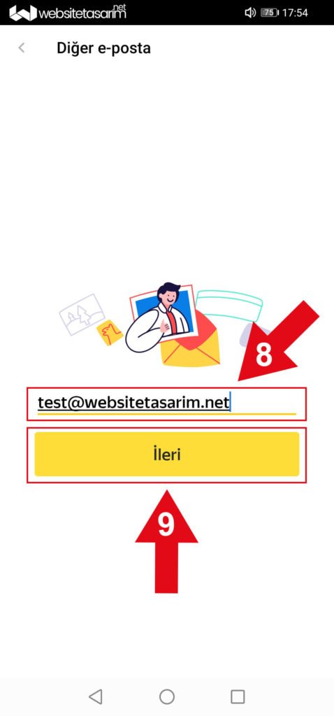 ● Ok içerisinde “8” ile göstermiş olduğumuz alana “Mail Adresimizi” yazıyoruz.