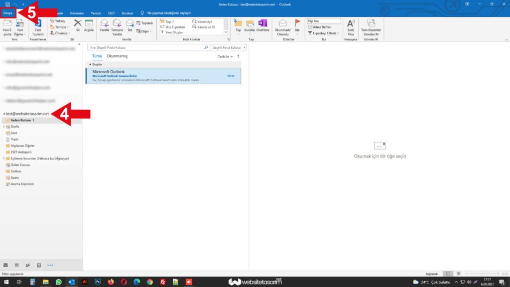 ● Ok içerisinde “5” ile göstermiş olduğumuz alanda ki “Dosya” menüsüne tıklıyoruz.