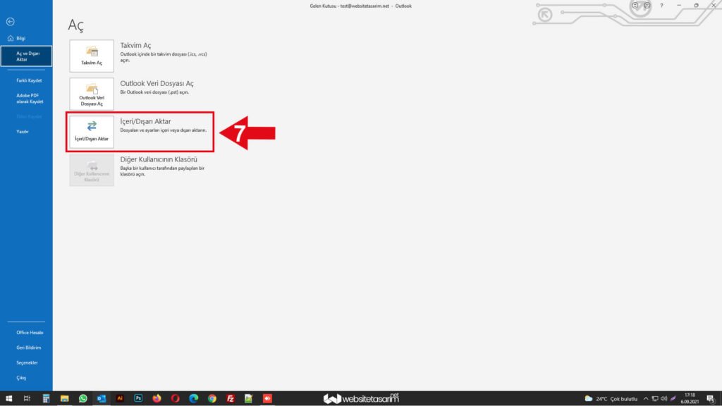 ● Daha sonra ok içerisinde “7” ile göstermiş olduğumuz alandaki “İçeri/Dışarı Aktar” ibaresine tıklıyoruz.