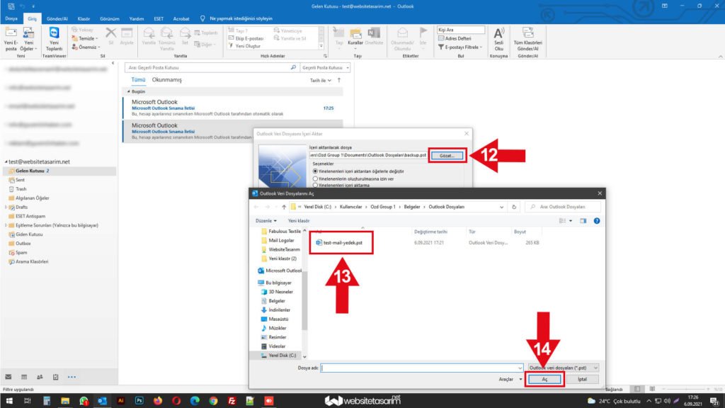 Outlook mail yedeğini geri yüleme işleminde bir sorunla mı karşılaştınız. Destek ekibimize sitemiz üzerinden TICKET oluşturabilir veya support@websitetasarim.com mail adresinden bizlere ulaşabilirsiniz.